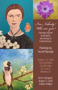 Delighted to be the October featured artist for the City of Alhambra. Paintings inspired by the poetry and musings of poet, Emily Dickinson. Please join me on October 17th for the Artist’s Reception.